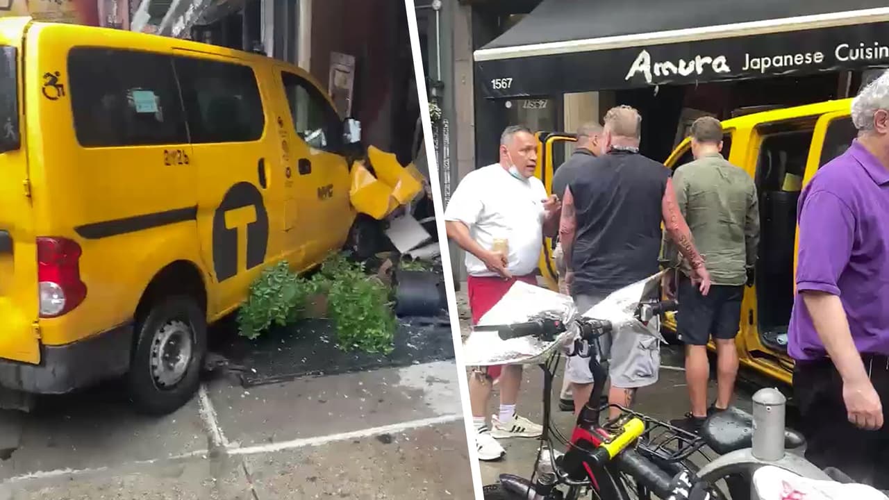 Taxi salta a la acerca y se estrella contra restaurante japonés de NYC