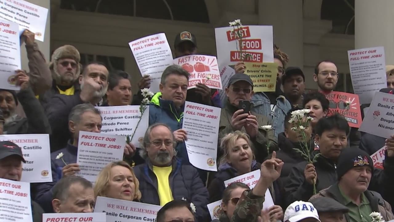 Taxistas de Nueva York protestan con ataúdes para exigir cambios en las regulaciones de su trabajo