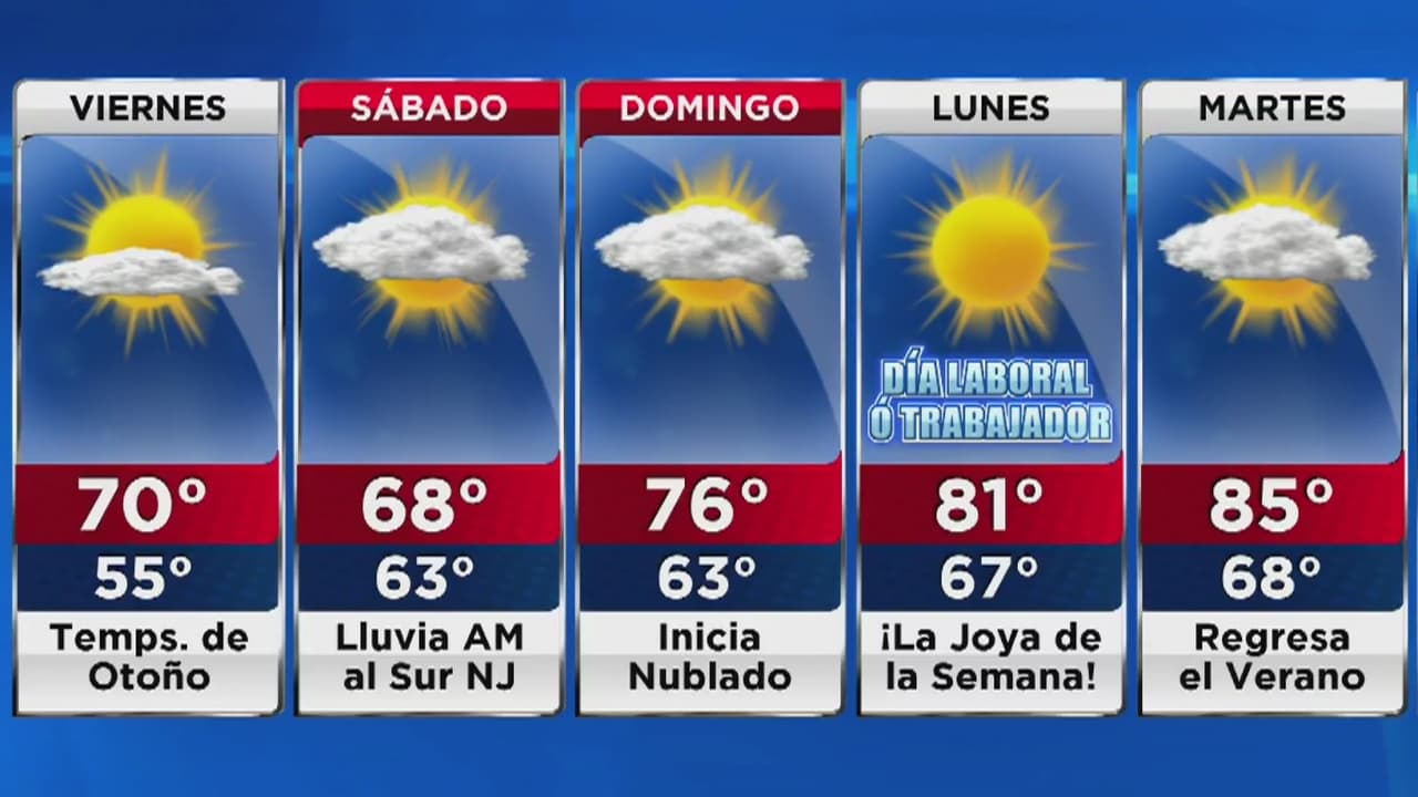 La temperatura estará varios grados por debajo de los normal, con una máxima para hoy de 70 grados. El fin de semana se mantendrá fresco, pero con nubosidad y probabilidad de lluvia, especialmente el domingo.