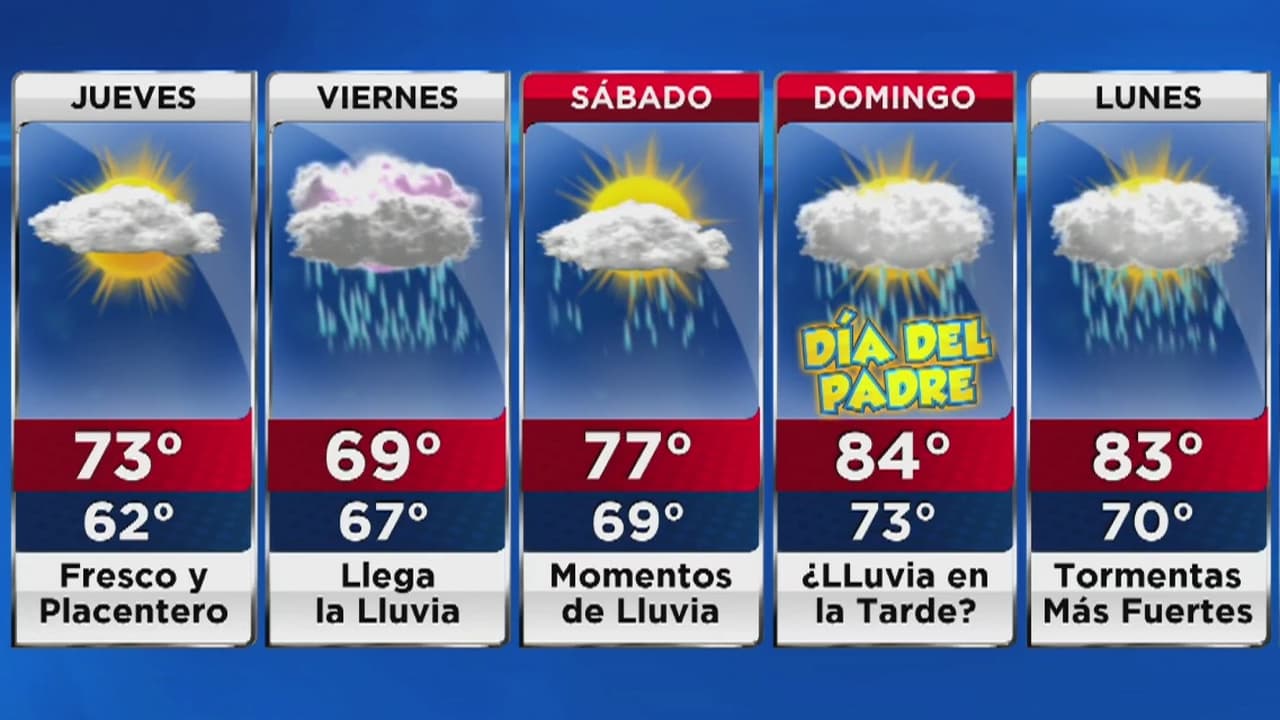 Este jueves disminuye un poco el calor que se estaba sintiendo en días anteriores, como consecuencia de una ligera nubosidad en el cielo y del anticipo de lluvia el viernes. La máxima temperatura 73 grados, con sensación térmica un poco por encima.