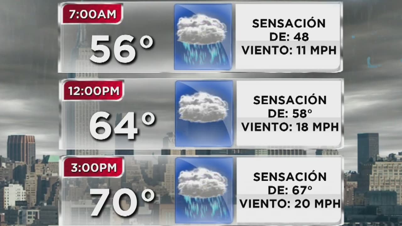 Será un día nublado, lluvioso, con fuertes vientos, pero cálido en algunas horas. La temperatura máxima llegará a los 70 grados y la mínima a 56 grados. Las tormentas eléctricas se esperan para la mañana y posiblemente en la noche.