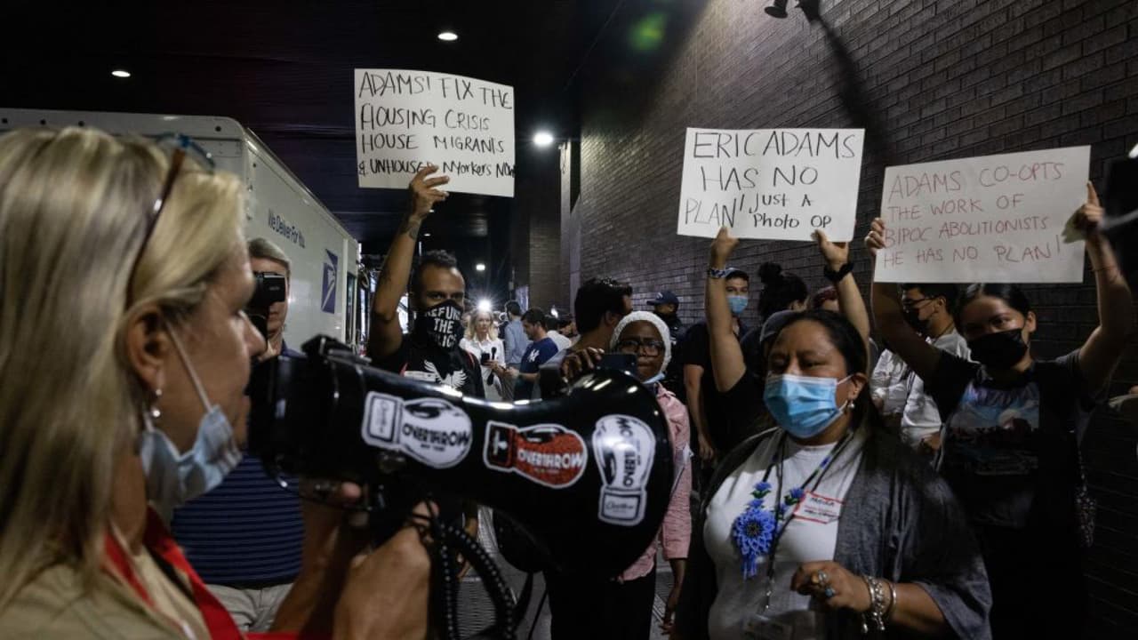 Los autobuses llegaron a la terminal de Port Authority y fueron recibidos en medio de los saludos de representantes de la ciudad y activistas, alguno de los cuales mostraron carteles en contra del alcalde Eric Adams, al cual acusan de no estar preparado para afrontar la emergencia. Por su parte, el presidente del condado Manhattan señaló que, más allá de la vivienda, deben pensar en la atención médica de estos migrantes.