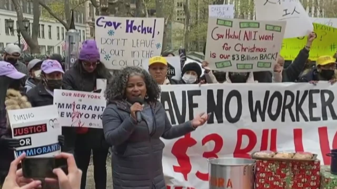 Trabajadores excluidos de planes de ayuda por pandemia protestan en Manhattan: ¿Qué están exigiendo?