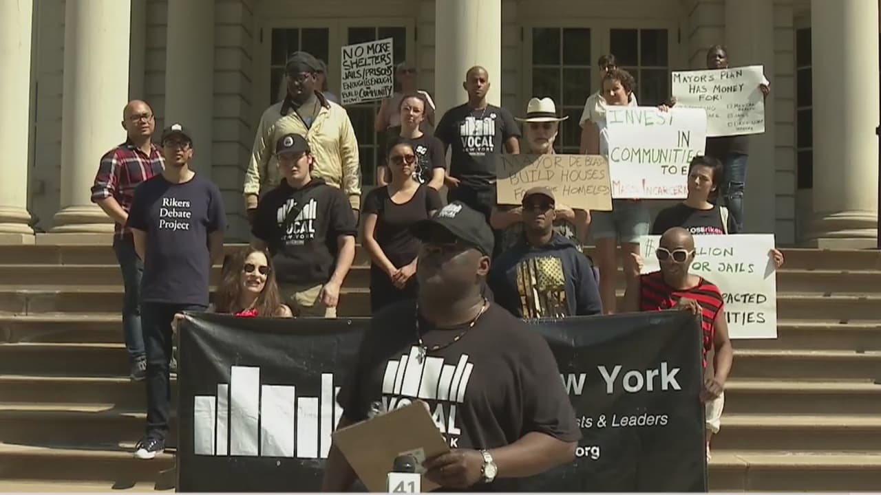 Un grupo de personas protestó este miércoles en frente de las instalaciones de la Alcaldía de la ciudad para expresar su descontento por la propuesta del mandatario local Bill de Blasio de reemplazar la prisión de Rikers Island por cárceles más modestas en El Bronx, Brooklyn, Manhattan y Queens. La iniciativa debe ser aprobada por el Concejo Municipal.