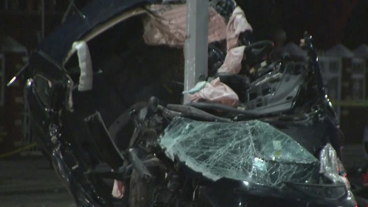 Un auto termina incrustado contra un poste de luz en Nueva York y hay dos personas en condición grave