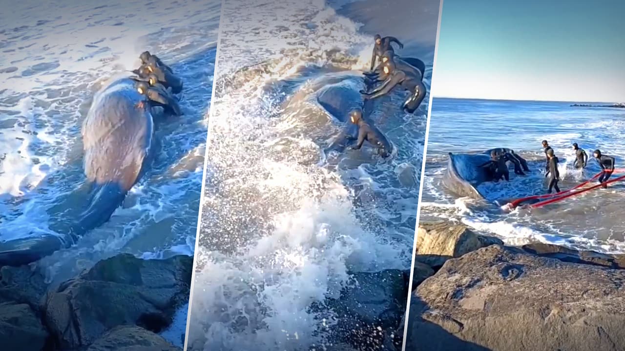 Un cachalote bebé muere mientras intentan salvarlo en plena playa de Queens