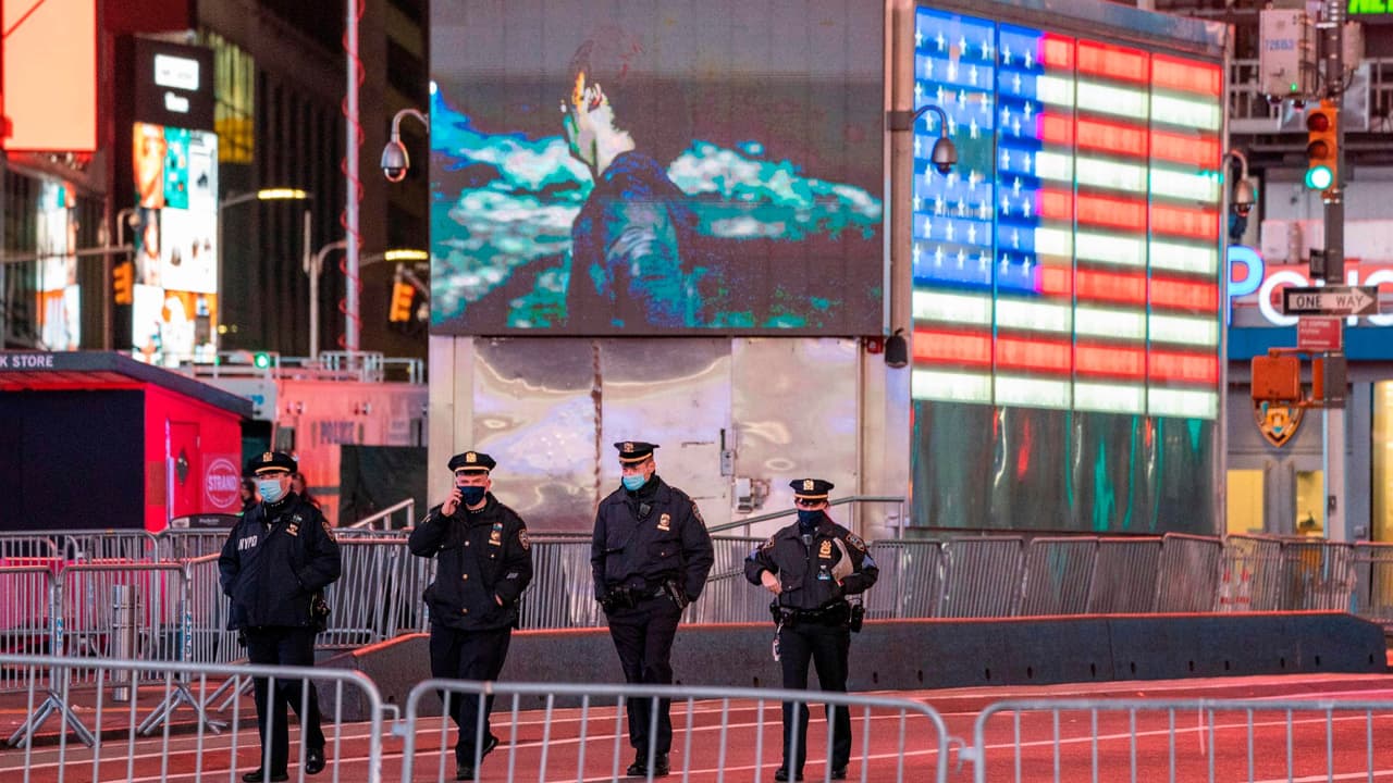 Un reducido grupo de manifestantes se reúne en Times Square para exigir la salida de Trump y Pence