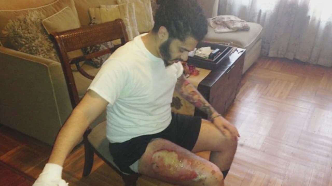 Ricardo Jiménez, de 24 años de edad, asegura que el aparato electrónico explotó cuando lo tenía en un bolsillo del pantalón, lo que le provocó heridas en una pierna y en las manos.