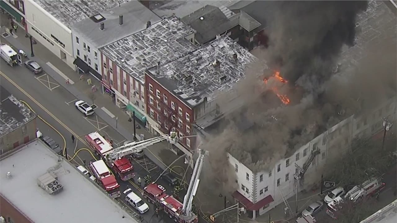 Un voraz incendio hace colapsar cuatro edificios en Nueva Jersey