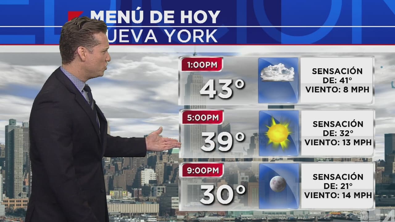 Se pronostica que la temperatura para el final del día se estará sobre los 30 grados Fahrenheit, aunque con una sensación de 21. Los vientos continúan soplando a una velocidad de 14 millas por hora y las posibilidades de precipitación son de apenas el 10%.