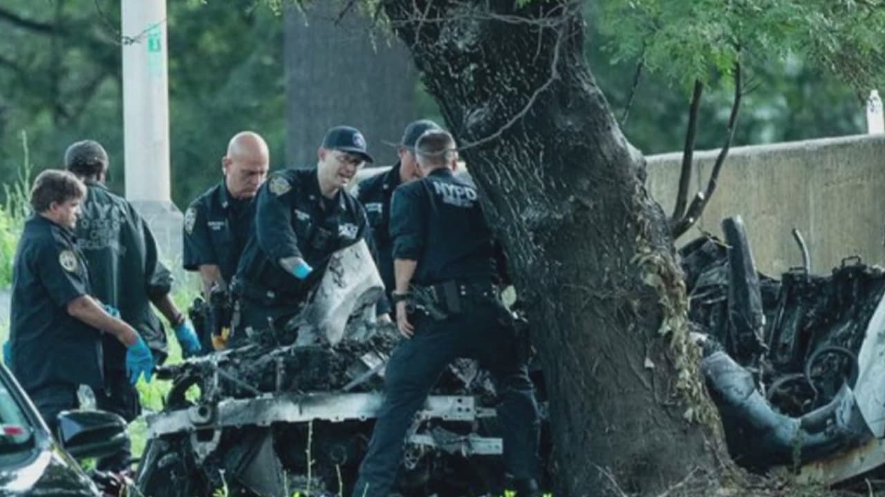 Una oficial de policía y un hombre mueren tras estrellar su auto contra un árbol que se encendió en llamas en Nueva York