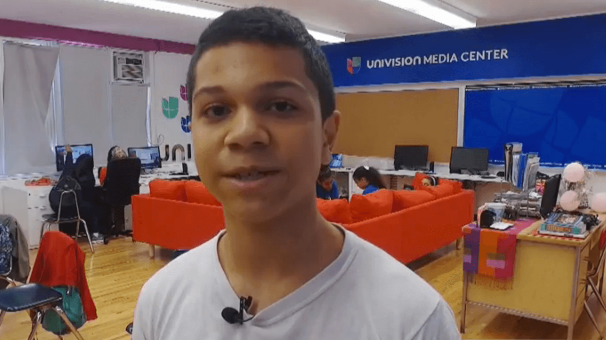 Los jóvenes participantes del Univision Media Center, en New Venture Community, trabajan reportajes sobre contaminación y acoso, entre otros temas.