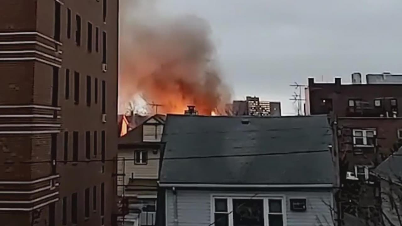 A través de un mensaje por Twitter, FDNY publicó una foto que muestra que al menos una de las casas se había derrumbado en el incendio.