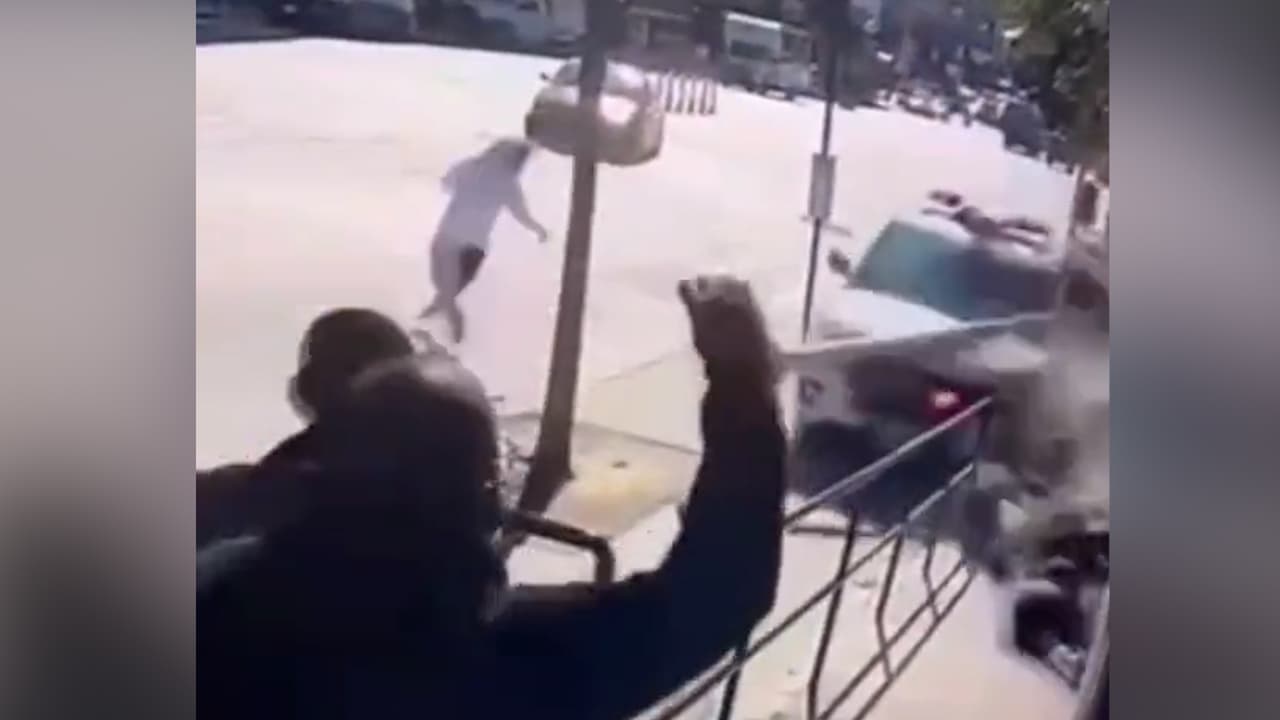 Un operativo policial terminó en un aparatoso accidente cuando el vehículo de la policía de Nueva York perdió el control, se subió a la acera y atropelló a varias personas. Advertimos: las escenas son fuertes.