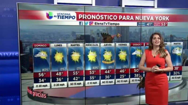 En Nueva York habrá un frente frío y posteriormente fuertes vientos. La ciudad tendrá una temperatura máxima de 56 grados y una mínima de 34 grados.