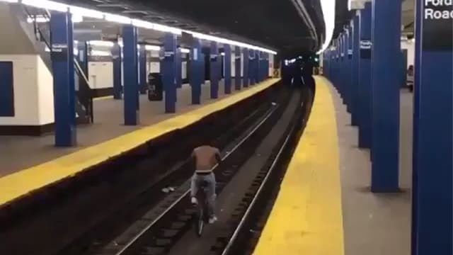 Video: hombre recorre vías del subway montado en su bicicleta