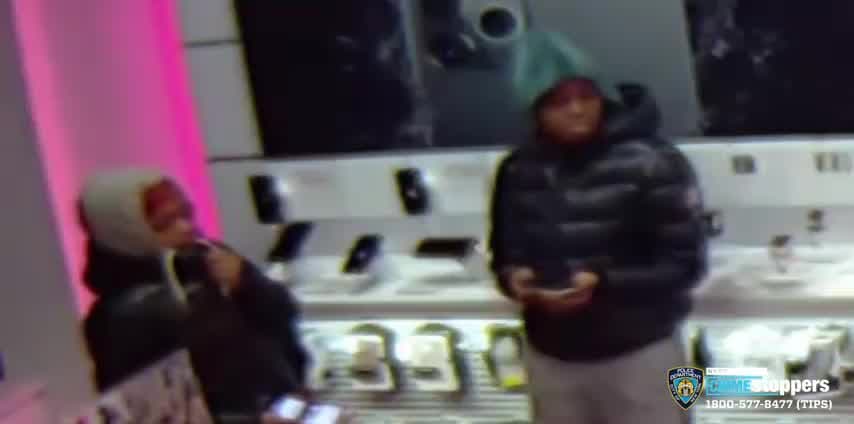La policía de la ciudad de Nueva York solicita la ayuda del público para identificar a dos mujeres en relación a un robo de celulares en una tienda T-Mobile de Brooklyn.