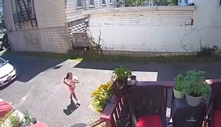 Una niña de Nueva York fue captada por una cámara de seguridad mientras tomaba acción rápida contra un incendio en la casa de un vecino. Ahora la pequeña está siendo aclamada como una verdadera heroína.