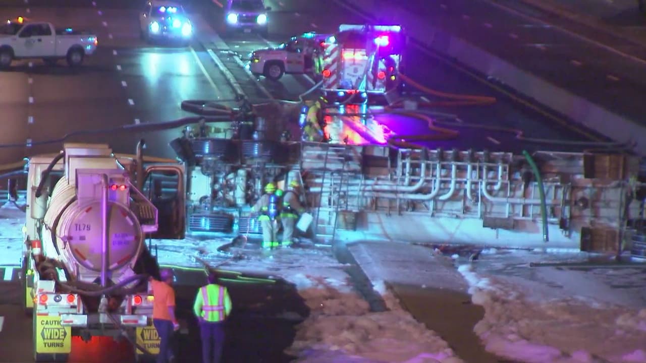 El camión chocó contra otro vehículo a la altura de Hackensack, Nueva Jersey, dejando a los dos conductores con lesiones de consideración y provocando caos vehicular. Se adelantan las labores para recoger el petróleo que quedó en la vía, además de una investigación.