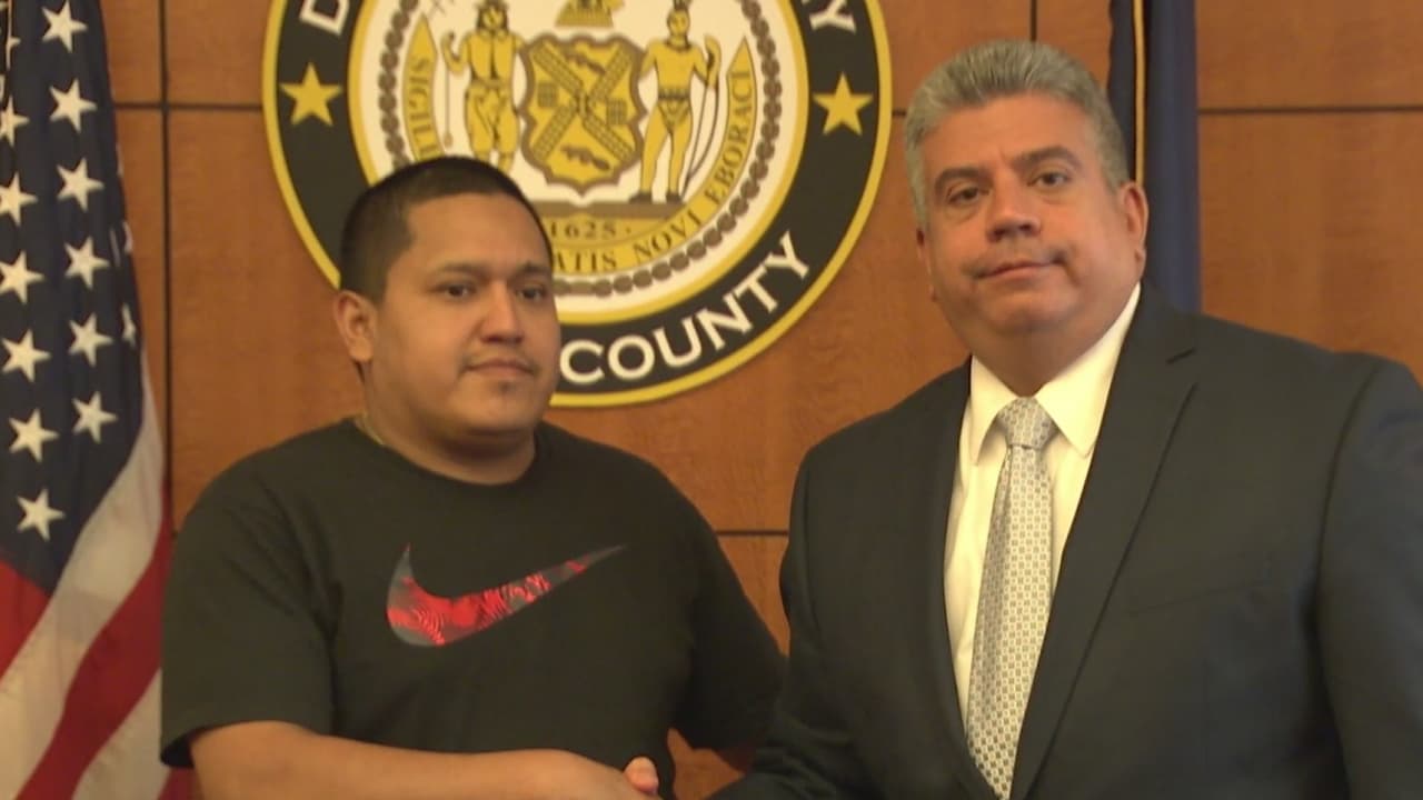 Acompañado de sus dos hijos y su esposa, el inmigrante William Siguencia Hurtado llegó a la Fiscalía de Brooklyn para agradecerle al fiscal Erick González el llamado que hizo para que no lo deportaran. Este padre ecuatoriano colaboró como testigo en dos casos de homicidio, pero en junio pasado fue arrestado por agentes de ICE por ser indocumentado.