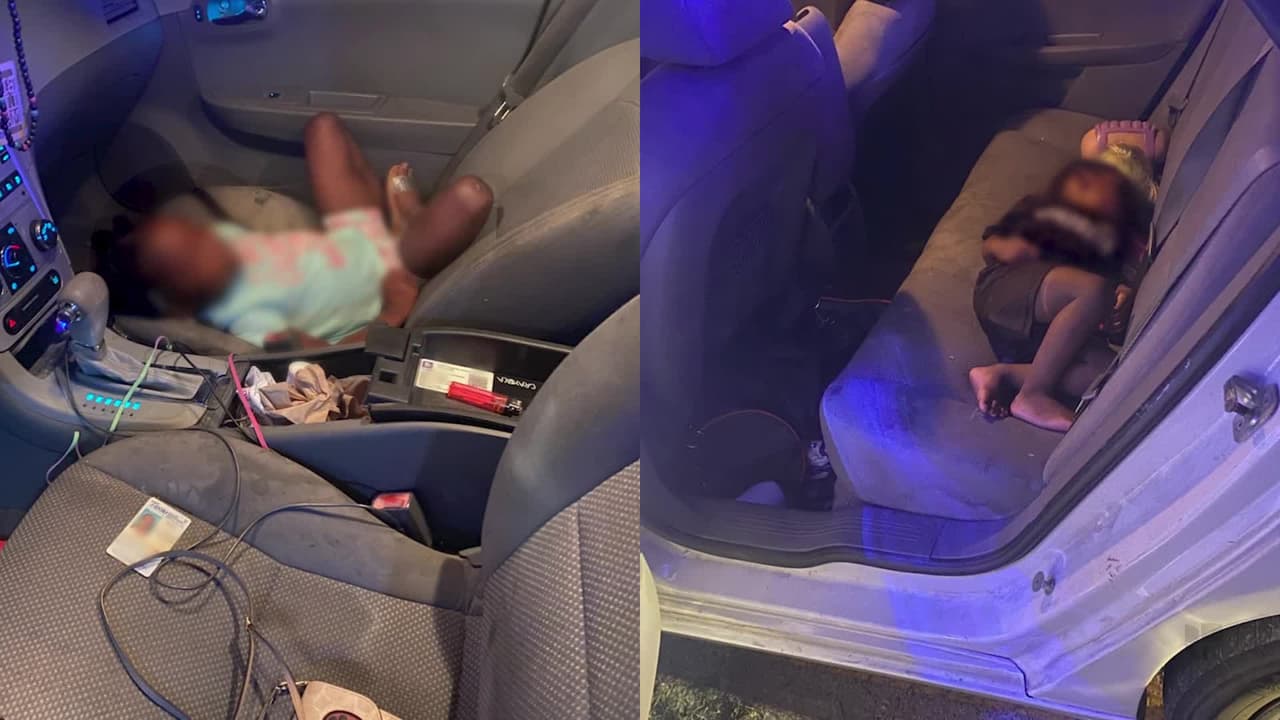 Dentro del vehículo, habían dos niños durmiendo, de 2 y 3 años, uno en el asiento del copiloto y otro en la parte de atrás, sin sus respectivos asientos de seguridad.