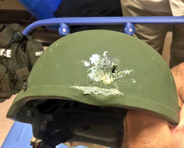 Junto con su mensaje publicó una fotografía de un casco que da muestra de la batalla que vivieron los policías al enfrentar al tirador en la discoteca Pulse en 2016.