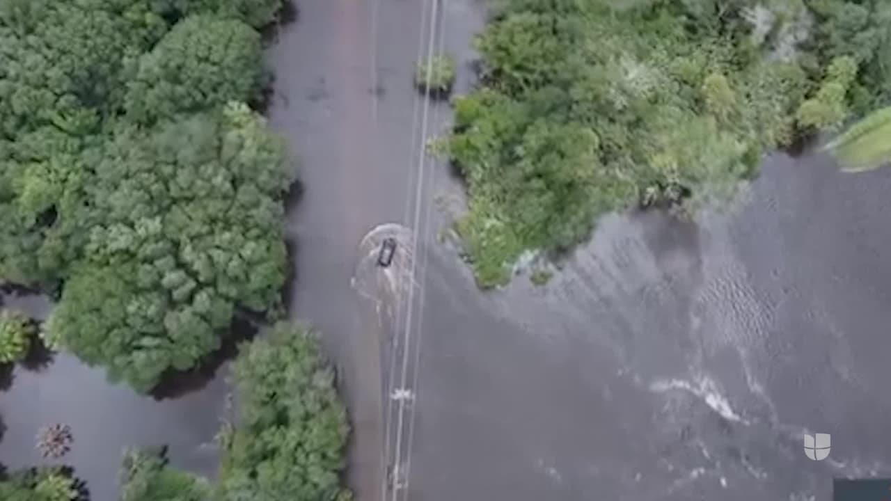 Rescate dramático en Manatee: Salvan a mujer de camino inundado tras el paso de huracán