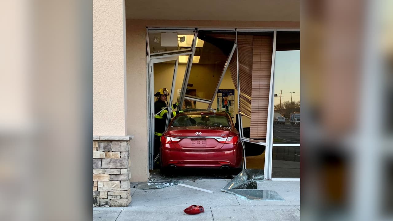 El Cuerpo de Bomberos del Condado de Osceola explicó que un vehículo de color rojo perdió el control y atravesó la entrada principal del establecimiento. Dijo que el negocio estaba abierto en el momento del accidente, pero nadie resultó herido.