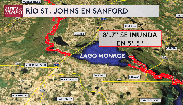 Por lo anterior se pide a la población estar alerta ante más inundaciones cerca del cauce del río Saint Johns, algo que ya ha estado ocurriendo cerca del lago Monroe, donde se han llevado a cabo evacuaciones en las últimas horas, según pudo confirmar el reportero de Noticias Univision Orlando Edwin Díaz González.