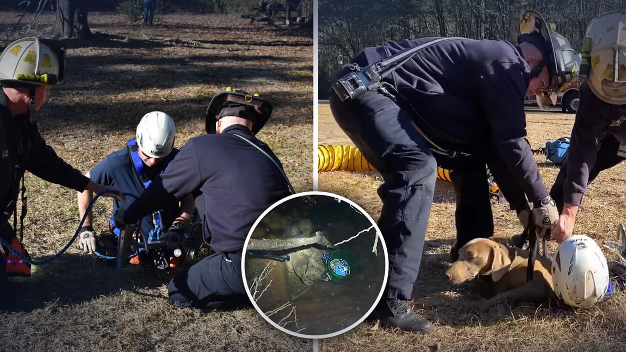 Bomberos de Walton rescatan a perro que cayó a un agujero de 15 pies