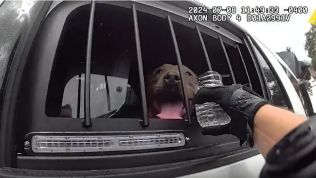 Un oficial de Policía, equipado con cámara corporal, abordó la situación con determinación y compasión, rompiendo la ventana para rescatar al perro.