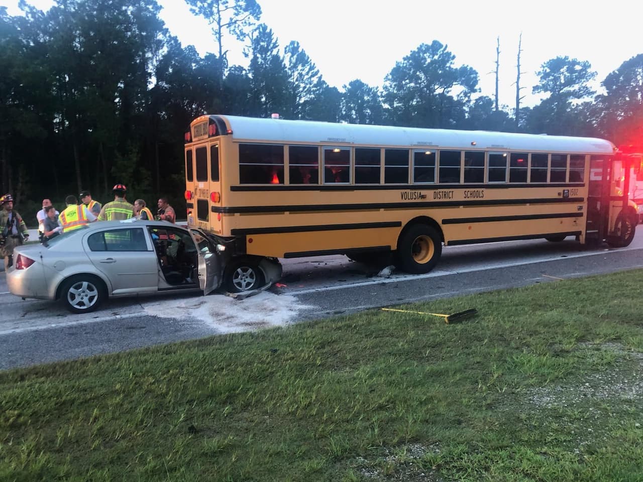 La mañana de este martes un conductor resultó herido tras impactar por detrás un autobús escolar del condado Volusia con 33 estudiantes de la Escuela Primaria Champion mientras recogía a un niño en una parada de autobús en el área de 3554 West International Speedway Boulevard en Daytona Beach.