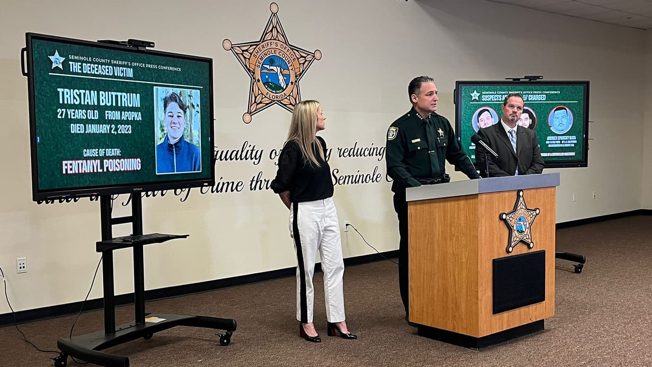 Tres hombres fueron arrestados y acusados por la muerte de Tristan Buttrum, de 27 años quien falleció el pasado 2 de enero por causa del fentanilo. Según las autoridades, gracias a una operación en cubierta se logró la captura de Bradley Hunter, Vincete Diaz y Andrés Raya quienes enviaron 40,000 pastillas de fentanilo a Florida Central y de ellas, 500 pastillas las recibió el informante. Dennis Lemma, alguacil del condado Seminole, explica cómo fue el operativo.