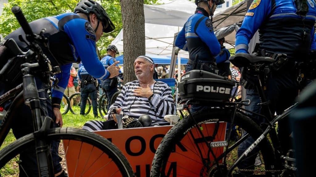 Video Detractor de Trump llega vestido de preso hasta la corte federal y desata molestia entre sus simpatizantes