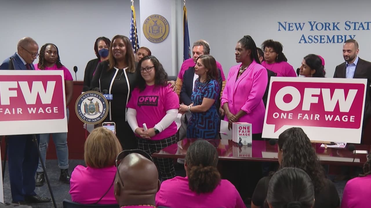 Empleados de restaurantes que no ganan el salario mínimo con propinas piden mejores condiciones laborales en Nueva York