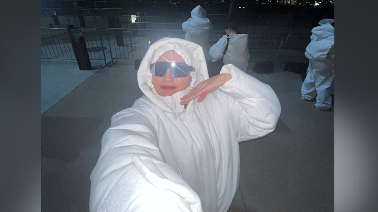 De esta manera sorprendió a sus amigos y familiares luego del show. En otro video describe cada una de las prendas que tenía el "traje de malvavisco", como lo llamaban.
