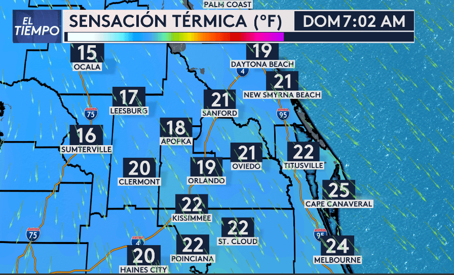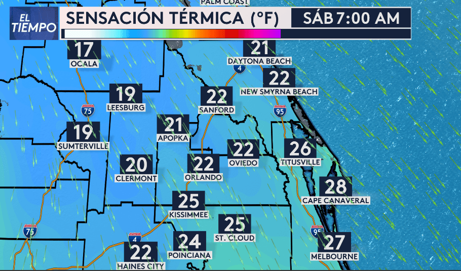 - Sensación térmica entre 15 y 25 grados Fahrenheit por al menos 16 horas el fin de semana de Navidad.