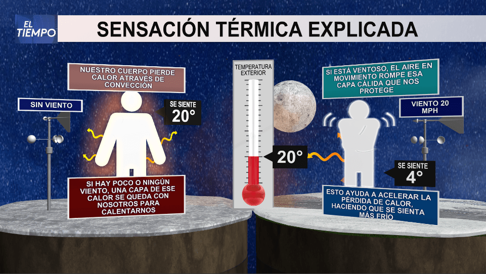 En verano el índice de calor es la combinación entre la humedad del aire y la temperatura, mientra que durante el invierno la sensación térmica es la combinación entre la temperatura del aire y el factor viento.
