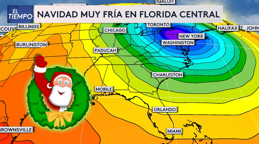 Un sistema de baja presión, que sería un evento de vórtice polar, estaría afectando gran parte del centro y el este de Estados Unidos, trayendo bajas temperaturas a Florida Central durante la Navidad.