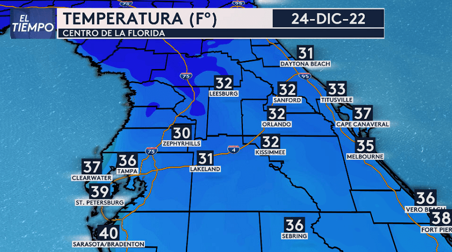 Por su parte, Kissimmee, Orlando, Sanford y Lessburg tendrían temperaturas de 32º F, mientras que Daytona Beach experimentaría 31º F.