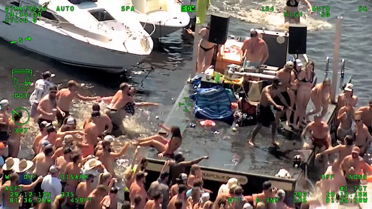 Una cámara aérea captó todo lo que pasó en el "Mayhem at Lake George" en el condado Volusia de Florida.