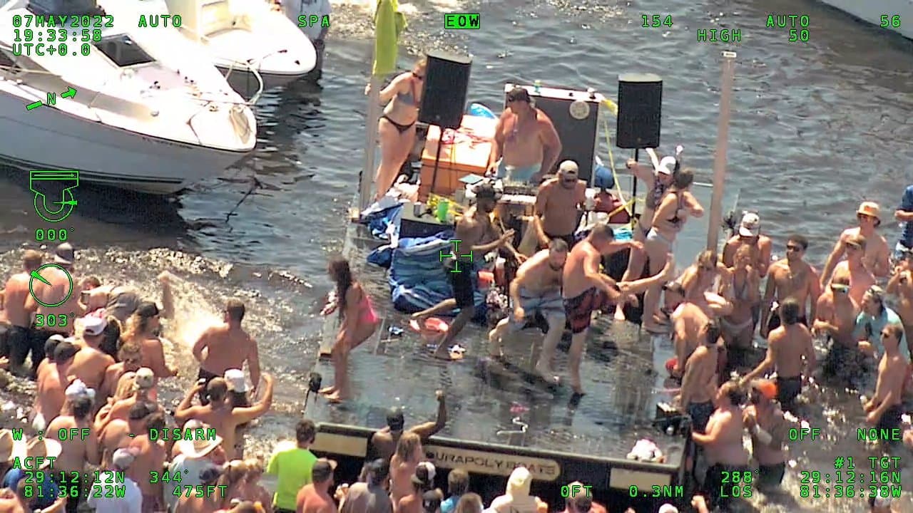 La Oficina del Alguacil del condado Volusia junto a otras agencias de la ley patrullaban vía aérea y marítima el evento y detectaron un grupo de hombres golpeándose en el agua.