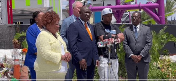 Más tarde, el padre de Tyre también realizó una conferencia de prensa desde Orlando Free Fall de ICON Park. Estuvo acompañado por los abogados Ben Crump y Bob Hilliard.