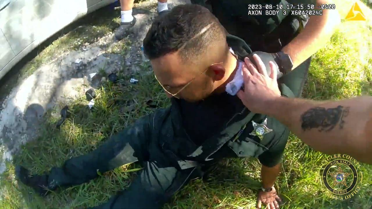 El agente Nick Huzior del condado Flagler comenzó a sentirse mareado y no sentía sus piernas y brazos. Todo quedó captado en las cámaras corporales.