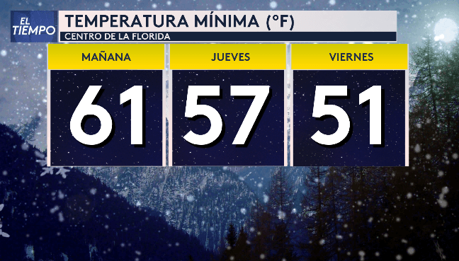 Sin embargo, en los demás condados de Florida Central tendremos temperaturas entre los 60 y 50 grados Fahrenheit.