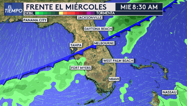 Se trata de un sistema frontal que va a arrastrar aire más frío desde el norte hacia nuesta área, que en este momento está cruzando sectores de Mississippi, Alabama y Georgia con lluvias que estarían llegando a Florida la tarde de este martes, de acuerdo al pronóstico de nuestra meteoróloga Iriana Guerrero.