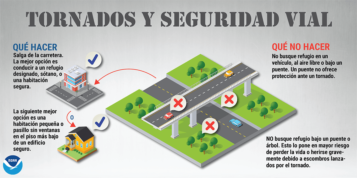 - Si estás en un área con pronóstico de tornado, sintoniza la radio del Servicio Meteorológico Nacional (NOAA) y las noticias locales, o las redes sociales de entes gubernamentales para mantenerte informado. Sigue las instrucciones de los funcionarios estatales y locales.