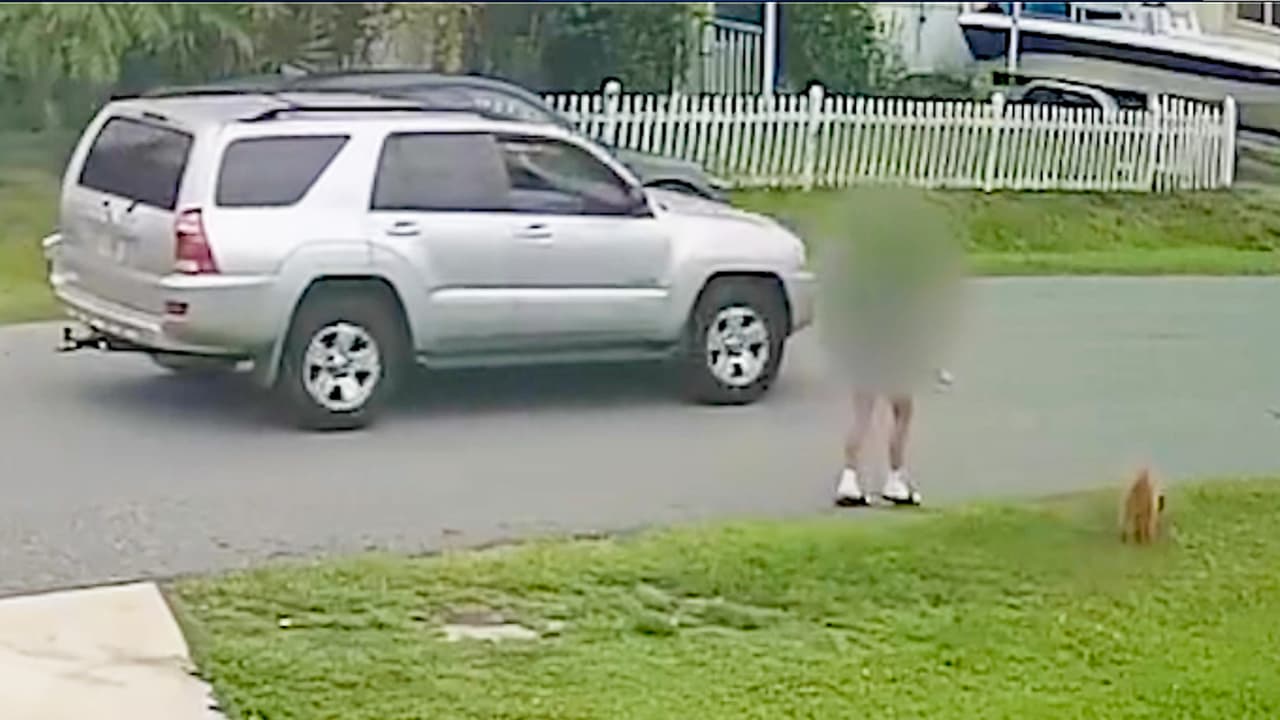 La víctima logró escapar corriendo, mientras que el agresor huyó rápidamente por Carlson Drive. Todo quedó registrado en cámaras de vigilancia, las cuales muestran el SUV alejándose del área.