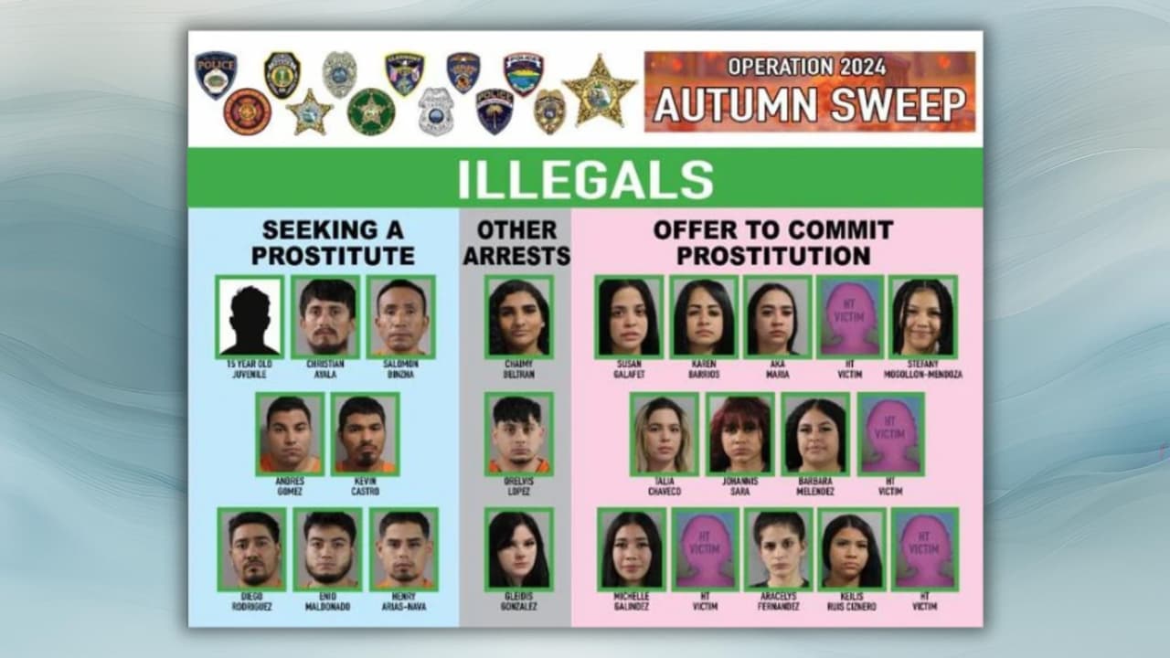 De los 157 sospechosos arrestados, 96 fueron detenidos por solicitar prostitución y acudir al lugar encubierto para negociar actos sexuales a cambio de dinero. Otros 14 sospechosos fueron arrestados por diversos delitos, entre ellos, uno acusado de tráfico humano, un delito que conlleva una pena de cadena perpetua. En total, los detectives presentaron 35 cargos por delitos graves y 201 por delitos menores.