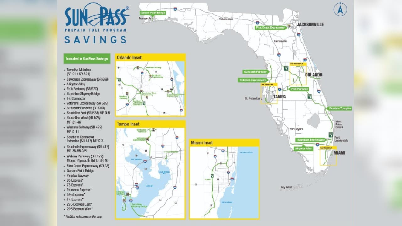 Aquí puedes ver el mapa de los peajes que incluye "SunPass Savings":